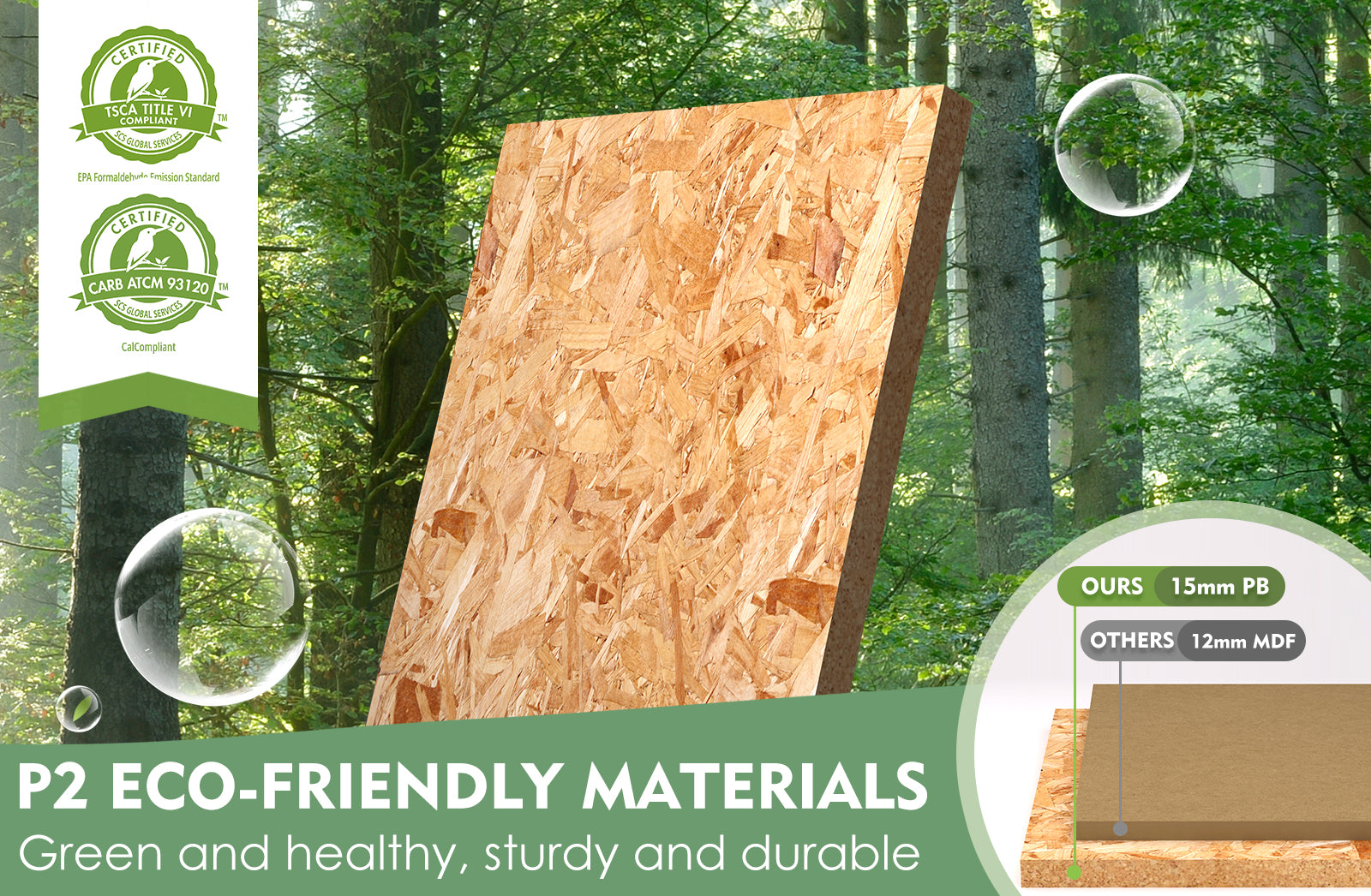 Crafted from 15mm P2-grade engineered wood, 30% denser than standard boards for maximum stability. -
