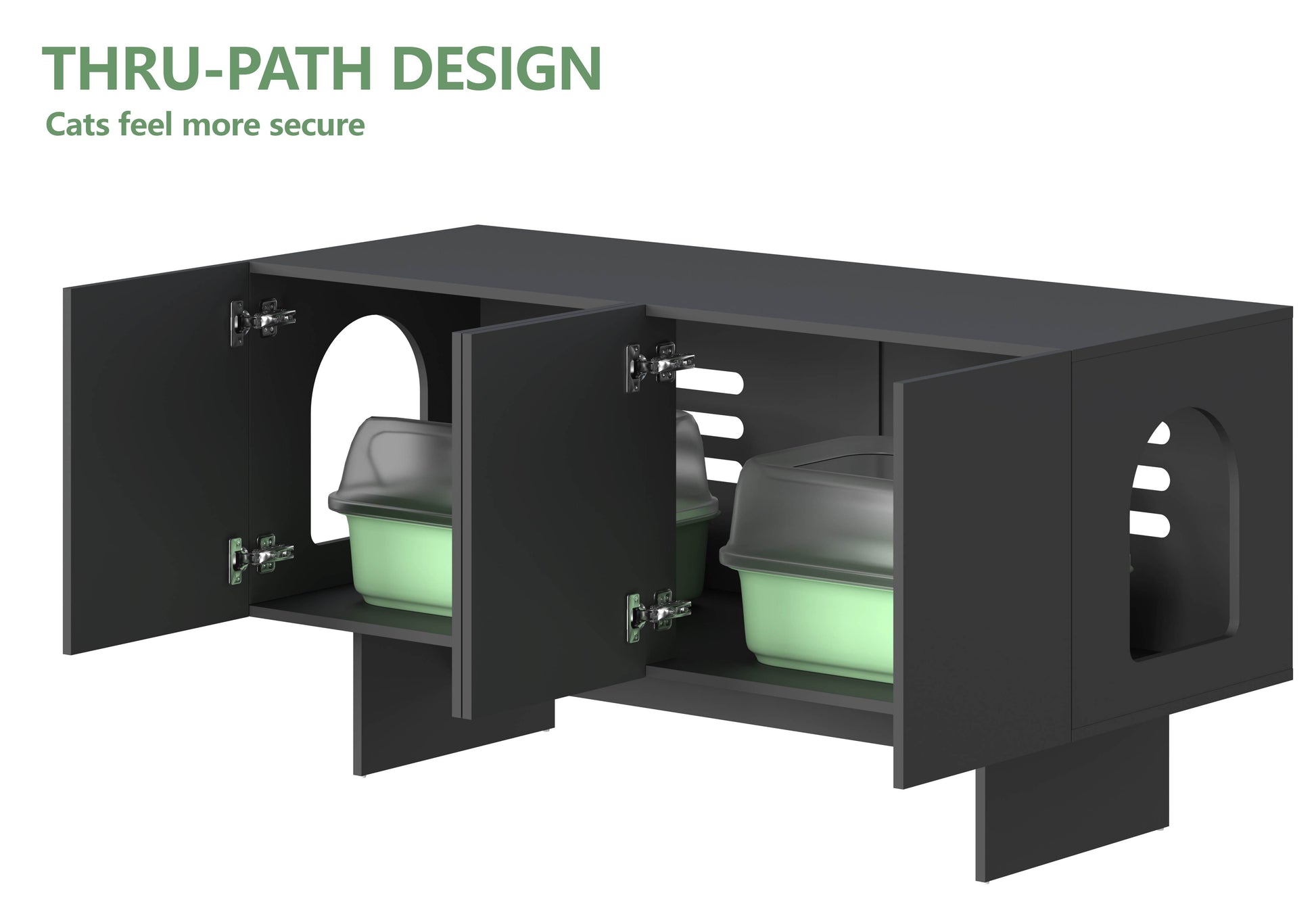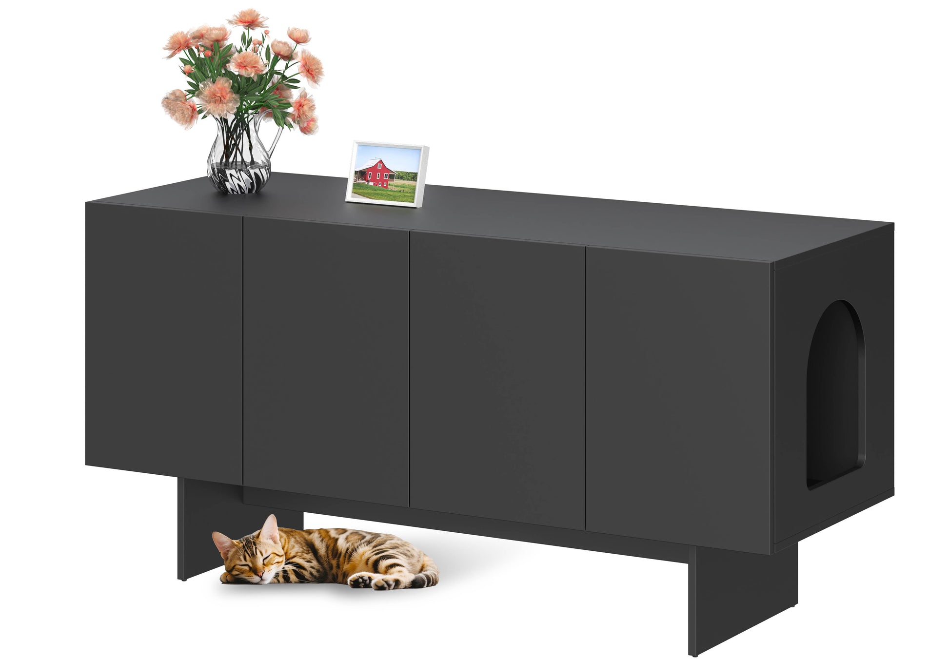 Amunrbrek Double Cat Litter Box Enclosure Cabinet – Extra Large Modern Hidden Cat Furniture