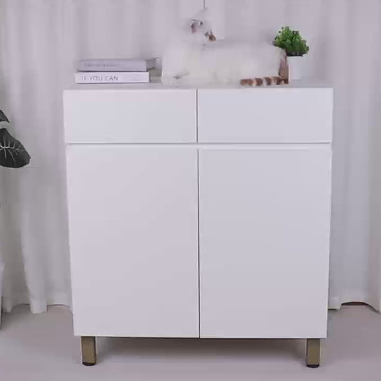With its modern white finish and gold accents, this enclosure looks more like a designer sideboard than pet furniture. Crafted from durable, eco-friendly engineered wood, it provides long-lasting use and a chic addition to your living room, bedroom, or hallway.