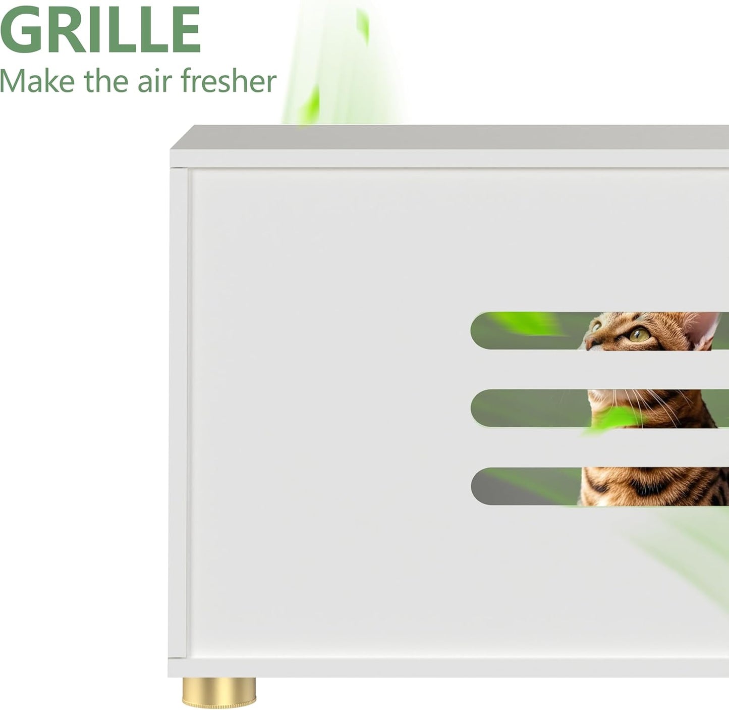 - Exclusive Cat-door: It can reduce 85% of litter falling out of the litter box enclosure. The scratching mat inside the door can be used to clean cat's claws.
