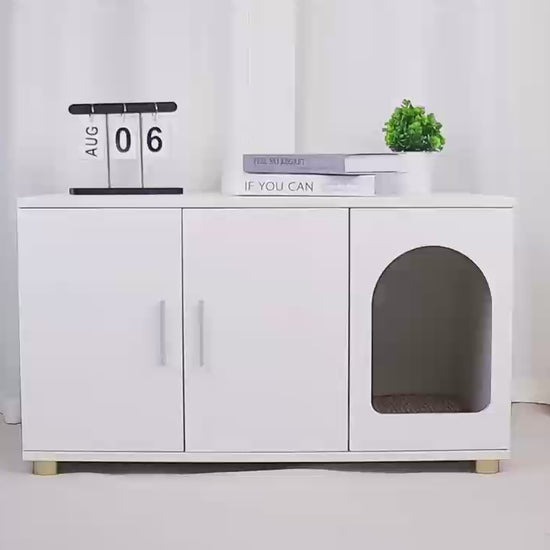 - Exclusive Cat-door: It can reduce 85% of litter falling out of the litter box enclosure. The scratching mat inside the door can be used to clean cat's claws.